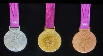 Here is a first glimpse of the 2012 Olympic medals struck by the Welsh Mint and designed by Artist David Watkins. The medals bear the logo of the London games and depict Nike, the Greek Goddess of Victory, stepping out of the Parthenon to arrive in the host city. The front side of the medal illustrates a bowl resembling an amphitheatre a reference to the origins of the games. The overall circular shape is a symbol of the world, while the back side contains a drawing of the River Thames, to reflect London along with a square to break up the medal’s round design emphasising the focus on the centre. Under the London 2012 logo is a grid to add “a sense of embracement. The design also depicts an image of radiating energy that represents the athletes’ achievement and effort”. Watkins, who was one of the special effects designers of 2001: A Space Odyssey, said he was delighted when his proposition was selected from six shortlisted designs.The gold medal is made up of 92.5% silver, 1.34% gold (a minimum of 6g) while the remainder is copper. The silver medal is 92.5% silver and the rest is copper, while the bronze medallists win medals that are made up of 97% copper, 2.5% zinc and 0.5% tin.