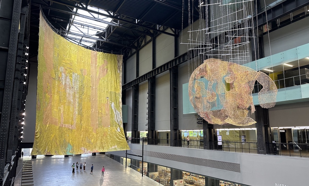 5) El Anatsui, a Ghana-born sculptor, created the Hyundai Commission at Tate Modern in 2023, filling the Turbine Hall with a monumental sculptural installation made from thousands of metal bottle tops and fragments.