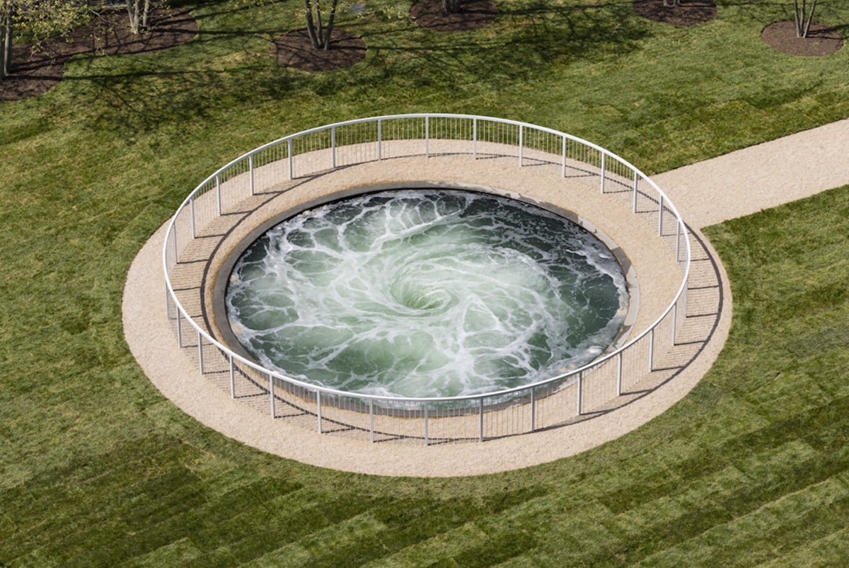 Since the mid-1990s, Kapoor has explored the notion of the void by creating works that seem to recede into the distance, disappear into walls or floors, or otherwise destabilize assumptions about the physical world. Descension realises a long-held aspiration of the artist to create a negative space alive with energy, continuously in process. 26-feet in diameter, the whirling pool will be surrounded by a railing, inviting audiences to peer into its depths. Through this transformation of properties inherent to materials and objects, Kapoor blurs the boundaries between nature, landscape, and art, allowing us to perceive space differently.