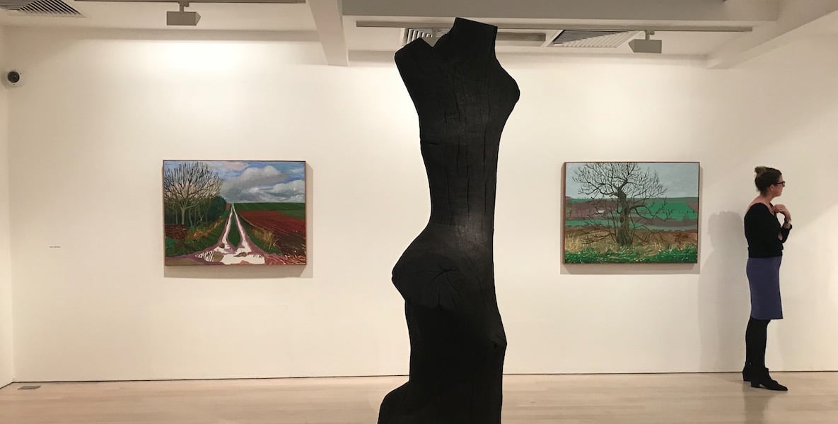 There was for example Mondrian. And the Russians! Malevich drawings, reconstructions of Tatlin’s iconic corner sculptures, Popova, Rodchenko, to name but few. The gallery was the first to show Christo now world famous, and for London provided a platform for the great basque sculptor Chillida. Anthony Caro and the younger sculptor David Nash are among their stars. And yet for a gallery which has consistently explored the powers of European abstraction, they are committed to two leading figurative or representational artists who work on the extremes of their idioms: David Hockney and Leon Kossoff. And a choice selection of contemporary Japanese.