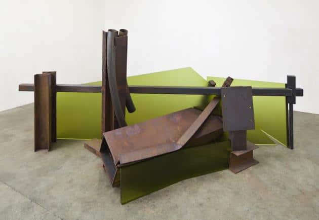 The last works created by the sculptor Sir Anthony Caro in the two years before his death in 2013 will be the focus of a major exhibition at Annely Juda Fine Art in London. Regarded as one of the greatest British sculptors of his generation, Caro’s long career is characterised by his innovative use of materials. Between 2011–2013 Caro began to experiment with Perspex, a material that he had only employed in one previous sculpture, the 2000 Duccio Variations No. 5. Initially interested in the transparent quality of glass, Caro turned to Perspex as a less fragile and easier material to work with. It also provided greater opportunity to experiment with colour; many of the works in the 25-strong Perspex series employ coloured sheets of Perspex, which contrast with the rusted steel or wooden structures into which they are incorporated. In End of Time (2013), for example, a shockingly bright red sheet of Perpex is placed across the top of the sculpture, while in River Run an earthy, semi-translucent green gives the metal pipes and sheets behind it an almost ghostly appearance.