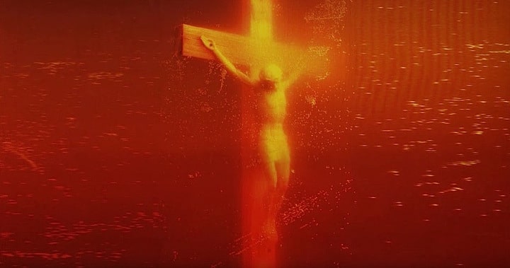 Images: Andres Serrano – Piss Christ – Photography Courtesy of the artist – Insert: UNESCO World Heritage Site – Aleppo’s World Heritage site in danger. Courtesy UNESCO
