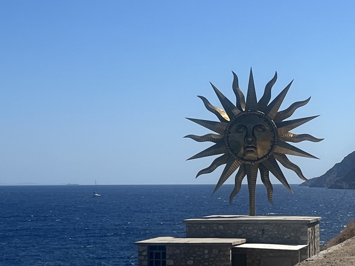 After Puglia, I went to Hydra, the majestic Greek island in the Saronic Gulf known by Art lovers – Thaddeus Ropac, amongst others, has a holiday home there. Arriving by boat in Hydra is spectacular. It is one of the most beautiful ports in Greece, together with Simi, its Dodecanese sister. I loved the walk – it is a car-free island – along the coast at the far end of the port towards the Desde Foundation. I was greeted by Jeff Koons’ impressive 9.1 metre Apollo Wind Spinner on arrival.