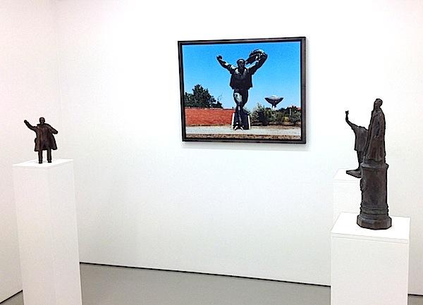 Liane Lang’s new exhibition at Art First in Fitzrovia combines elements of her ongoing series of works undertaken during her residency at the Memento Sculpture Park in Budapest (the resting place of discarded and exiled monumental sculptural works from the socialist era in Hungary) with a new series of sculptures that take as their subject defaced and destroyed monuments to dictators and deposed leaders – the sculptures themselves derive from documentation of these acts of symbolic violence: from the black and white footage of the Czar’s statue being torn down by horse-‐power in Eisenstein’s 1928 film October, to contemporary footage of a different kind of horsepower at work on the iconic statue of Saddam Hussein in 2003.