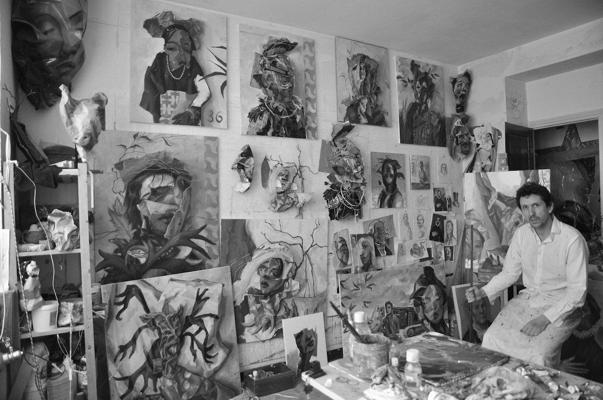 RUPERT SHRIVE: I’ve worked for a long time in different mediums: predominately painting but also collage, sculpture, ceramics and some generative programming that’s yet to see the light. Through mixing torn fragments of paintings with pencil drawings I made collages and through crushing paintings I transformed them into sculpture – then arranged in multiple element installations. In this latest series I’ve tried to bring it full circle – and painted oil portraits of these collage/sculptures – a kind of ‘transgenre’ journey from painting and drawing into collage and sculpture and then back into painting if you like – a convoluted way of working that keeps me entertained.