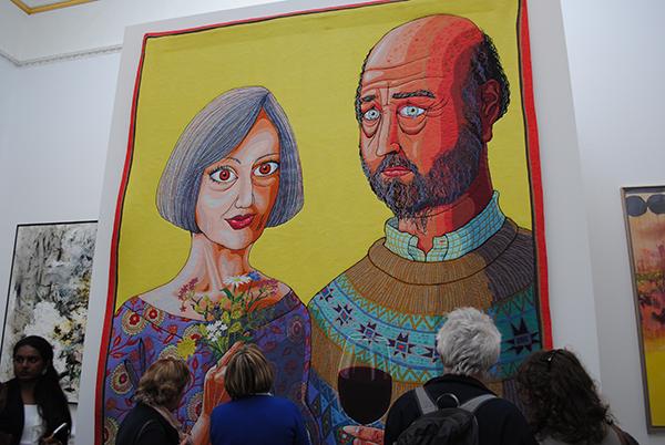 One of the highlights this year’s Royal Academy Summer Show 2015 is Grayson Perry’s Julie and Rob tapestry, a large work which is conceptually linked to the artist’s cross between Hansel and Gretel and a Russian Orthodox church, in the form of his house for Essex. The rentable holiday home is also an eccentric dedication to an individual by the name of Julie Cope.