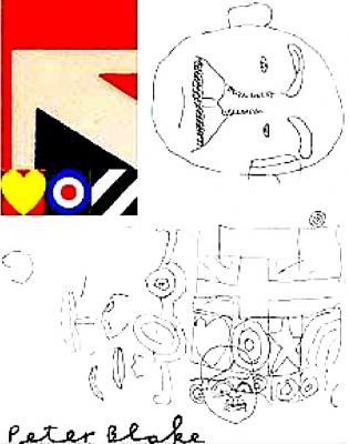 In the late 1950s, Blake became one of the best known British artists working in the new genre Pop Art. His paintings from this time included imagery from advertisements, music hall entertainment, and wrestlers, often including collaged elements. Blake was included in group exhibitions at the Institute of Contemporary Arts and had his first solo exhibition in 1960. It was with the ‘Young Contemporaries’ exhibition of 1961 where he was exhibited alongside David Hockney and R.B. Kitaj that he was first identified with the emerging British Pop Art movement. Blake won the (1961) John Moores junior award for his work Self Portrait with Badges. He first came to wider public attention when, along with Pauline Boty, Derek Boshier and Peter Phillips, he was featured in Ken Russell’s Monitor film on pop art, Pop Goes the Easel, which was broadcast on BBC television in 1962. From 1963 Blake was represented by Robert Fraser which placed him at the centre of swinging London and brought him into contact with leading figures of popular culture.