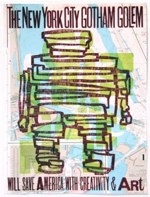 During the opening reception, at 8pm, Bob & Roberta Smith will read The Manifesto for The Art Party to music by the extraordinary Avant letterpress trombonist Dikko Faust. Pierogi and Purgatory Pie Press are proud to announce the release of a limited edition letterpress print (pictured above) to celebrate the launch of The Art Party and The New York City Gotham Golem.