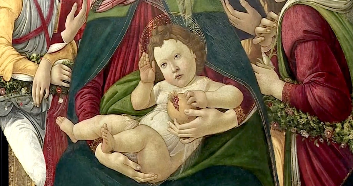 The work was thought to be a later copy of the Madonna of the Pomegranate, painted by Sandro Botticelli in 1487. The larger original, which is on display at the Uffizi Gallery in Florence is one of the artists best-known works. It is now thought to be the closest version of Botticelli’s 1487 masterpiece, which shows a melancholy Virgin Mary holding a baby Christ and a pomegranate, flanked by angels.