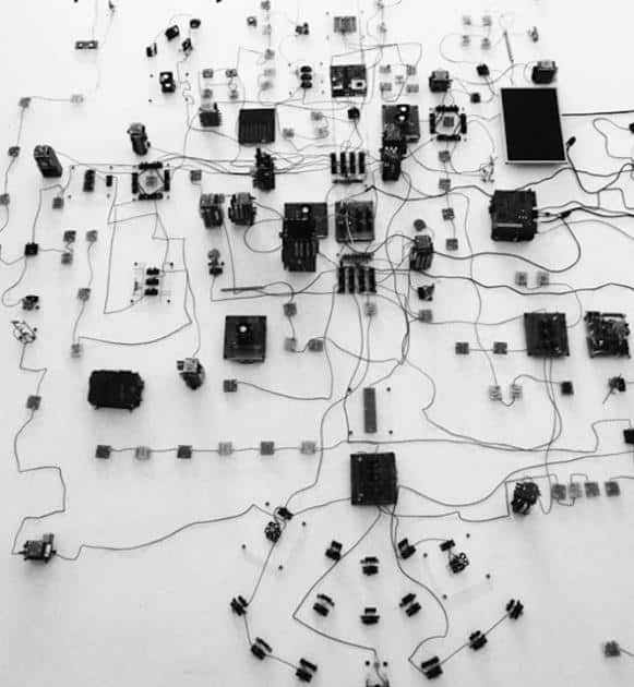 Capacities: Real Time Complex – Connected Cities by  Stanza is an installation dedicated to the complexity of life in an environment. Changes in each of the spaces are monitored in real time, as they give rise to constant tensions, highlighting the behaviour of complex systems and the emergent properties that appear. In this case the organism is the city and not the single individual; it is the entire urban habitat as a whole, revealing its nature as a multifaceted system. The installation is the real-time mirror image of everything that changes, gathering huge amounts of data that are transformed aesthetically into a physical copy of the city, made up of cables, lights and sensors that represent shifts in environmental parameters measured numerically. The obsessive focus is on the observation of environmental data by gathering measurement on temperature, light, atmospheric pressure, noise and the sounds of the city outside the museum. Gathering digital data on the environment has become an art, and art has become a data set rather than a collection of molecules. The short-list of the Jury reflects the reappearing artistic interpretation of the modern urban landscape as system, where the solid element is replaced by the message, theinformation and the database, a real, but dematerialized city.