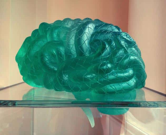 Reminiscent of Symbolist and Pre-Raphaelite discourses, the visual vocabulary employed in ‘Minotaurs of the Mind’ is complex and rich. Meticulous attention to details, high-quality materials such as optical glass and lead crystal, and impeccable finish charge the work with ethereal and precious qualities: as meaning unfolds, beauty, pain, and pleasure crystallise.
