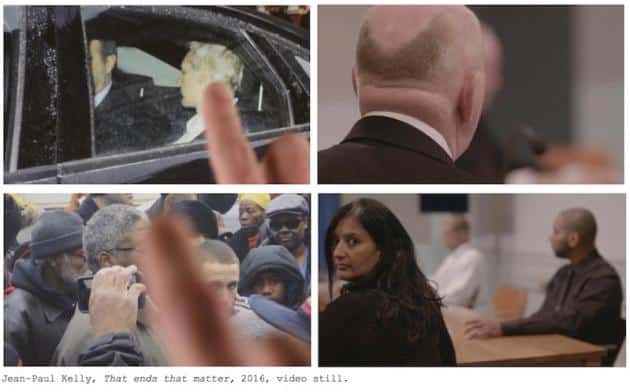 In this new installation, That ends that matter, Kelly questions documentary practices in UK courtrooms through a three-channel video and works on paper.