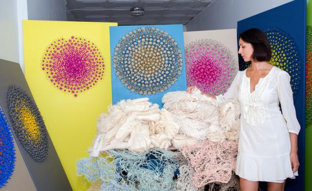 The Bulgarian artist, based in London and New York, Ida Ivanka Kubler has made over 40 artworks from The Birth of an Idea series with the use of a very unusual raw material: silk cocoons. They are found in homes all over the World: in the UK, Guernsey, France, Spain, Germany, India, Norway and the US.