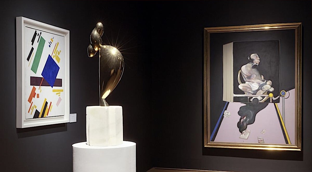 The auction was led by Kazimir Malevich’s Suprematist Composition, $85,812,500 (£63,423,873/ €71,922,672), and Constantin Brancusi’s La jeune fille sophistiquée (Portrait de Nancy Cunard), $71,000,000 (£52,475,979 / €59,507,761), both setting new world records for the artists at auction.