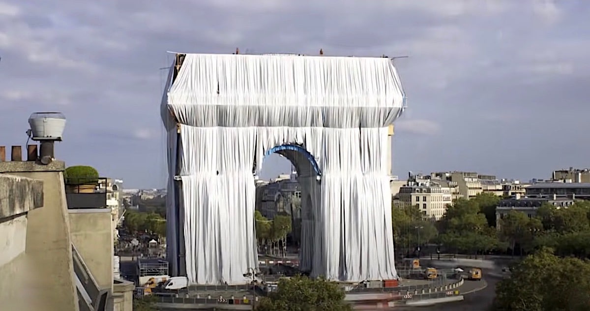 In 1961, three years after they met in Paris, Christo and Jeanne-Claude began creating works of art in public spaces. One of their projects was to wrap a public building. When he arrived in Paris, Christo rented a small room near the Arc de Triomphe and had been attracted by the monument ever since. In 1962, he made a photomontage of the Arc de Triomphe wrapped, seen from the Avenue Foch and, in 1988, a collage. Sixty years later, the project was realised. Christo and Jeanne-Claude have always made clear that their artworks in progress be continued after their deaths. Per Christo’s wishes, L’Arc de Triomphe, Wrapped, will be realised by his team.