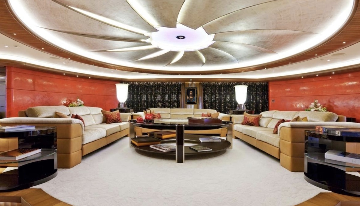 Top Photo: Yes this is the actual main lounge area of the Yacht Serena. The Salvator Mundi has been photoshopped in by us!