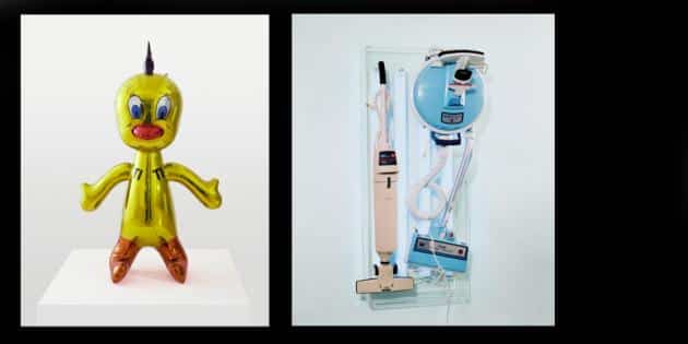 Right: New Hoover Quik Broom, New Hoover Celebrity IV 1980 Two vacuum cleaners, acrylic, fluorescent lights © Jeff Koons