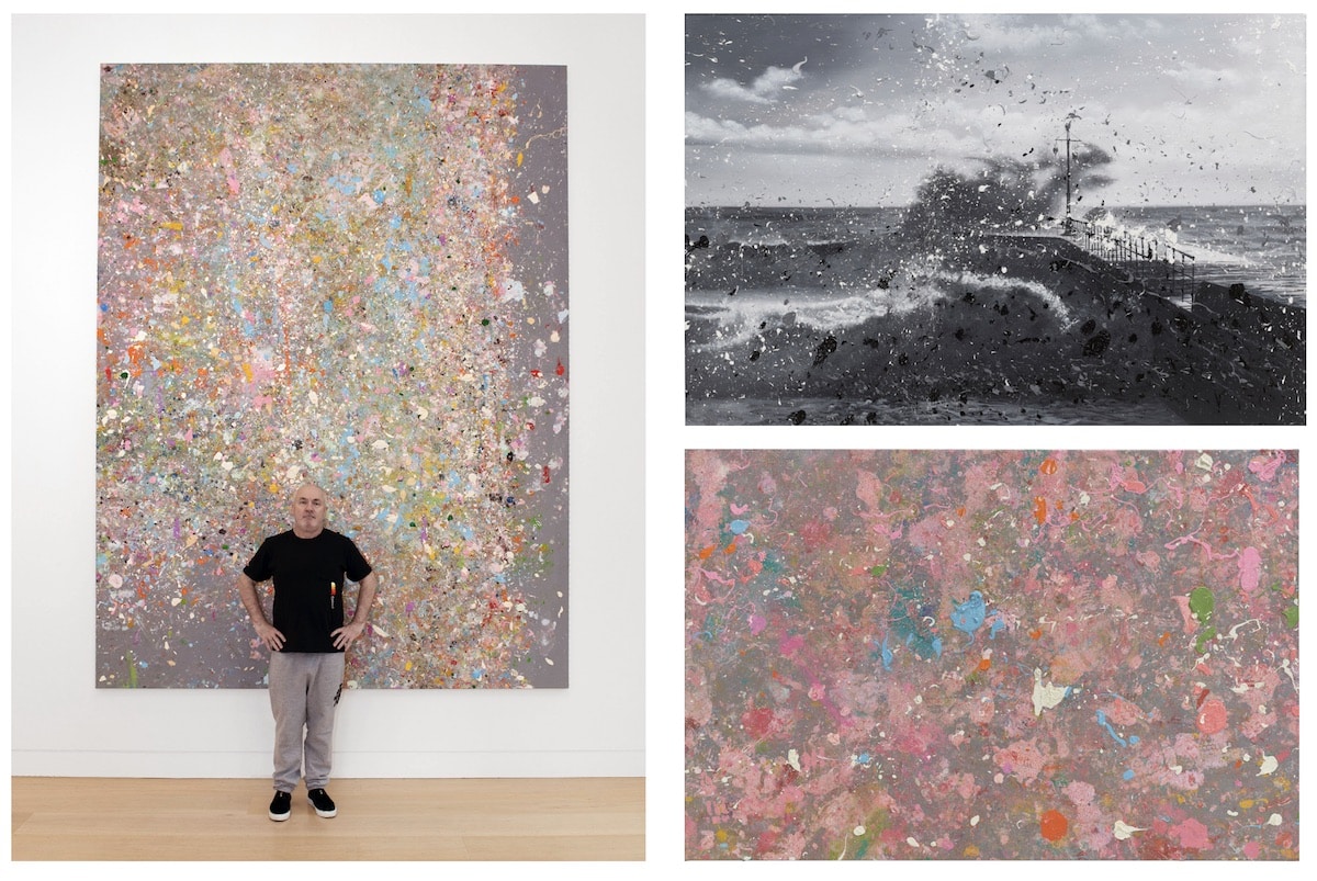 Sea Paintings marks the latest iteration in Hirst’s long-established practice of producing paintings after photographs, freezing in greyscale the power and energy of coastal storms. Seascapes use the photorealistic scenes of Sea Paintings as the basis onto which Hirst creates additional and tactile layers of action through splattered paint.