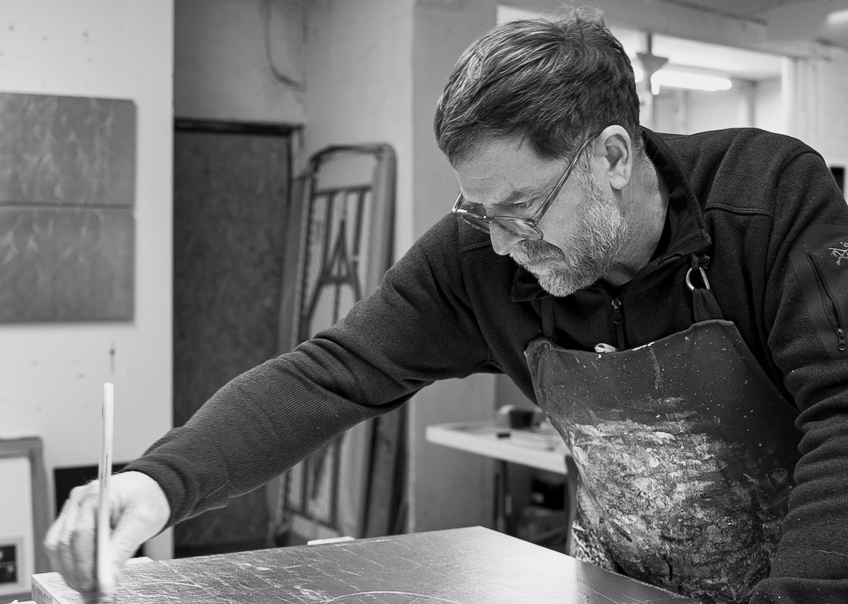 It is. You can’t get platinum any more due to Russian war. Palladium, next to it in the periodic table, is the most expensive. That’s a double thickness of 23.5 Carat gold: that’s quite some weight of gold per painting. That won’t tarnish, whereas copper will, so it is sealed. The metals do this wonderful thing of finding light. You see how that works in ancient Japanese lacquer furniture with flecks of gold in it.
