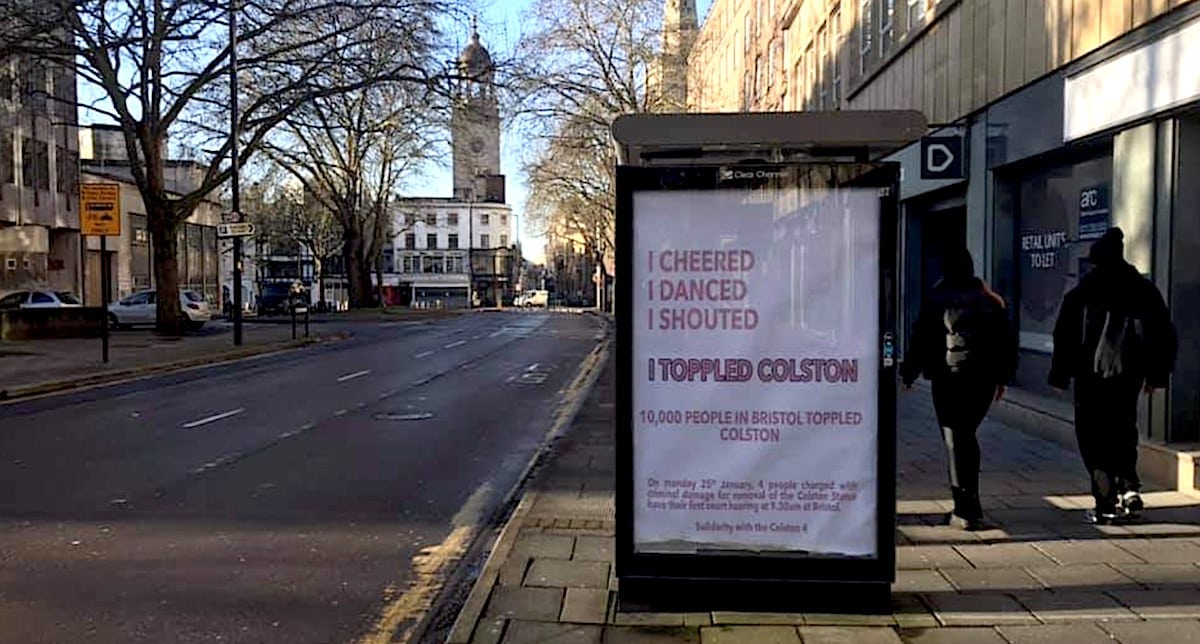 The four people charged with criminal damage for pulling down a bronze statue of slave trader Edward Colston and dumping it in Bristol harbour have pleaded not guilty. Jake Skuse, 36, Rhiannon Graham, 29, Milo Ponsford, 25, and Sage Willoughby, 21, appeared at Bristol Magistrates’ Court earlier today to deny the charges. They have opted to be tried before a judge and jury. They were bailed and are due to appear at Bristol Crown Court on 8 February. Arrests were made outside the courtroom when protesters ignored warnings not to gather outside the court. The offending bronze statue of slave merchant Edward Colston was pulled off its pedestal during a Black Lives Matter protest on 7 June. On Friday it was announced that two other statues of men involved in the slave trade would be removed from the Guildhall in London. The statues honoured former Lord Mayor of London William Beckford and 17th-century merchant Sir John Cass, who also had a London Art College named after him. The name has since been changed.