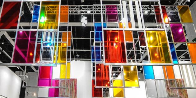 Yumiko Chiba Associates (Tokyo) will display Noosphere, 2012 by Japanese artist Takuma Uematsu (*1977). The piece consists of three chandeliers made up of small pieces of brightly colored agate stone in-set with shards of mirror.