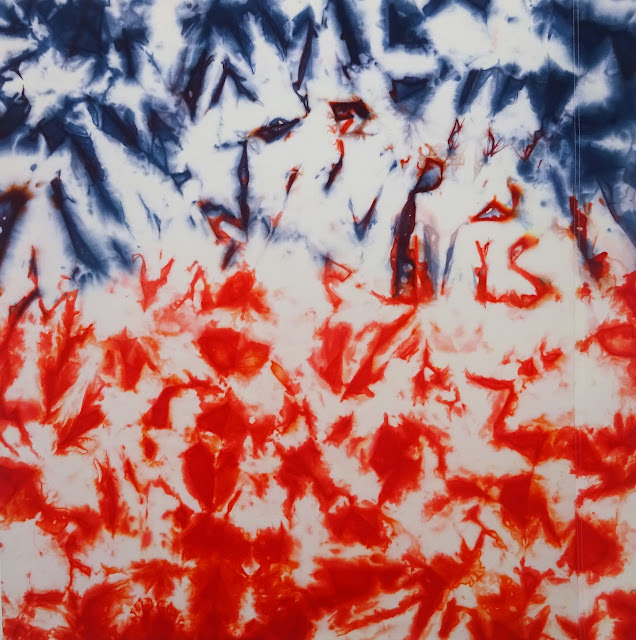 Poitr Uklański made several riffs on the American flag in 2012, in the context of his own status living between Warsaw and New York and of his work previously referencing the Polish flag. They seem timely now given the fracturing in the flag’s assumed power to unify and instil pride. Uklański’s method builds in a clash between counter-culture and establishment, as the colour results from the archetypal hippy technique of tie-dying onto cotton. That is then sewn onto canvas, often with the stitched seams visible so that – to return to metaphorical mode – you can see the joins.