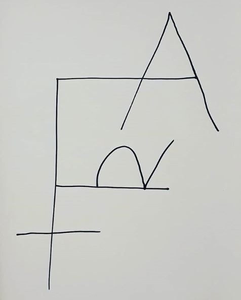 A thoroughly enjoyable parade of wit over two twenty minute cycles in a recommended viewing of painting, sculpture, performance, and film: one in a darkened space with films, one in the light with performances. ‘Work No. 2919 Tree of art’ 2018 is the most visually minimal in a packed show of ‘difficult thoughts’ which prove disarmingly simple. It seemed a touching metaphor of creative growth until I started reading it as ‘Fart’.
