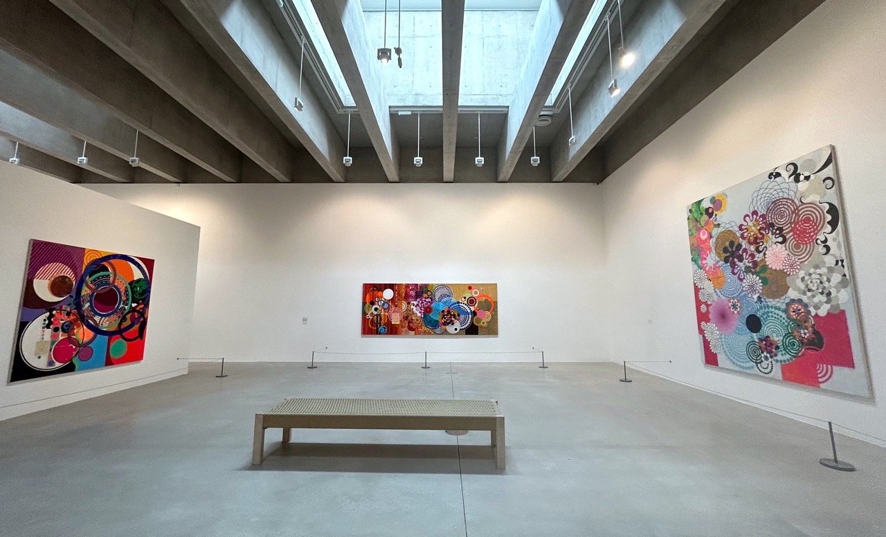 The Newman Street Gallery is an exhibition space that features a variety of pop up shows.  Its latest offering is a solo exhibition by Barrie Cook.  Cook’s canvasses are spray painted with multiple layers of colour, which creates a misty effect.  The artist says that he paints in this way “to break the habit of brushstroke mentality.”  Characteristically, Cook works in a horizontal or vertical bar-line format or in circles and ovals.