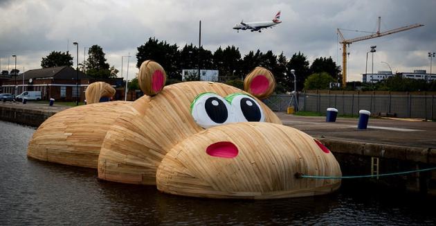 Florentijn Hofman has launched his first ever UK commission, ‘Hippo Thames’ for the Totally Thames festival. The Dutch artist best known for his giant yellow Rubber Duck which made it’s debut in Hong Kong during Art Basel in 2013, has created an extraordinary 21-metre-long hippo sculpture, which was towed upriver today from its build site at Royal Docks to its end position at Nine Elms on the South Bank, central.