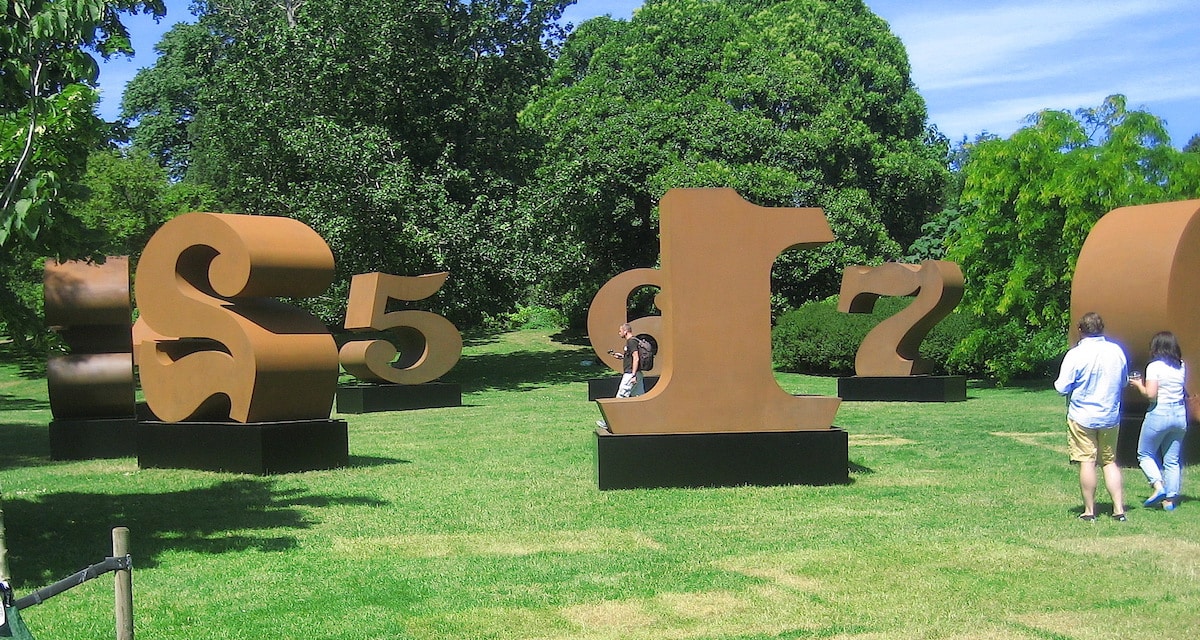 The one giant-sized in-your-face public statement in the show is by the late American Pop artist Robert Indiana: a group of large rust-coloured numerals, each numeral on a separate plinth. The title is ONE through ZERO. An alternative label that comes to mind is “I have nothing to say and I am saying it.”