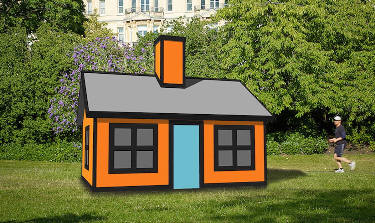 Stack, made in corten steel by Sean Scully (b. 1945, Ireland), renowned for his paintings and prints, Larry Achiampong’s (b.1984, UK) Afrofuturistic icons, PAN AFRICAN FLAGS; Yoan Capote’s (b.1977, Cuba) enigmatic sculpture of concrete and bronze, entitled Stress; Haroon Gunn-Salie’s (b.1989, South Africa) chilling group of crouching figures; Michele Mathison’s (b. 1977, South Africa) subversive street-lamp sculptures, exploring civic collapse and decay; and Tim Etchells’s (b. 1962, UK) new text-based work, Everything is Lost; Veteran Dan Graham (b.1942, USA) presents an exquisite glass pavilion which will be activated by visitors alongside a brightly coloured Holiday Home by Richard Woods (b.1966, UK); a 14-metre-high needle woman tower by Kimsooja (b.1957, South Korea); a new, monumental Optic Labyrinth by Conrad Shawcross (b.1977, UK); a stained-glass structure by Rana Begum (b.1977, Bangladesh) and Monika Sosnowska’s (b. 1972, Poland) hanging metal sculpture which collapses architectural and mental space.