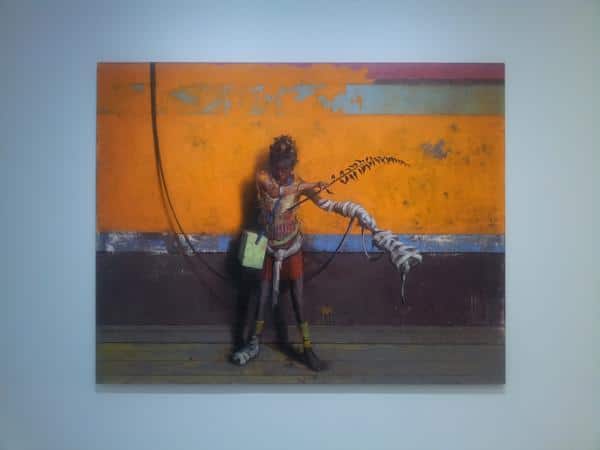 The effect on the viewer is more absurdest and engaging than actually unsettling, with a vibrancy of colour that insinuates the unreality of the image before us; nightmare returns to dream-scape; then lapses back to nightmare. The artist’s work brings to mind the British painter Justin Mortimer’s Baconian nightmares in fetishistic flesh; a psychological mise en scene of necrotic hues, frail bodies, victims of some amoral goya-esque performance; but on some sort of hallucinogenic compound administered with candy.