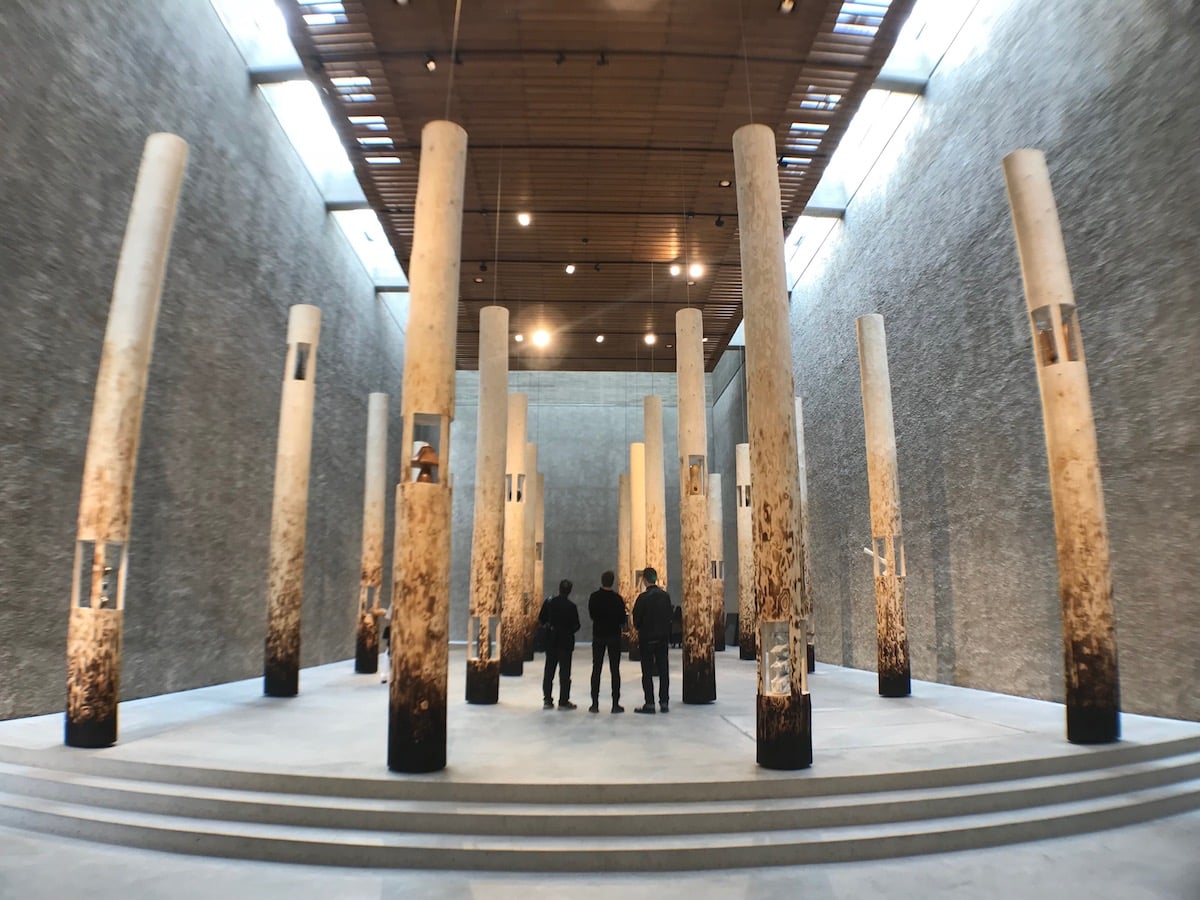 One of the most impressive works at Berlin Gallery week was found at KÖNIG GALERIE who presented, “When Dinosaurs Ruled the Earth’, Claudia Comte’s second exhibition at the gallery. Comte has conceived an immersive environment comprising spruce trees, new sculptures, and a multi-channel video installation for the nave of the space. In the main space, a large grid-formation features twenty spruce trees suspended from the ceiling – each tree revealing a carved reliquary in which wood, marble, and bronze sculptures are placed.