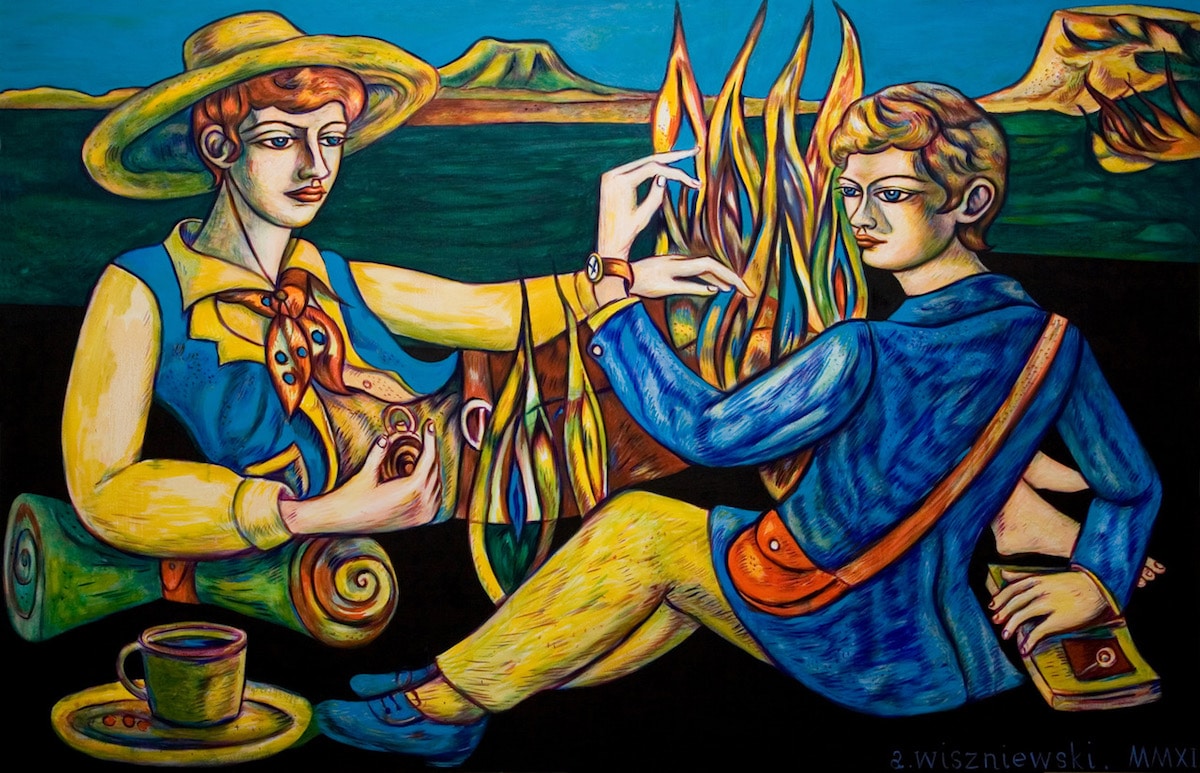 New president ADRIAN WISZNIEWSKI works in vivid, dramatic colour, and is all set to boost the RGI’s profile. “There’s nothing wrong with colour,” he tells me! Currently showing at Edinburgh’s Open Eye, his work can also be seen in the Tate, MoMA NYC & Setagaya, Japan. Neil MacPherson RSA, RGI, RSW, also has an international track record. His surreal legends peopled by Gaelic characters from folklore & myth, are equally lush, loud & likeable, while Helen Flockhart’s memorable, mysterious scenarios of female figures, add a touch of ancient magic.