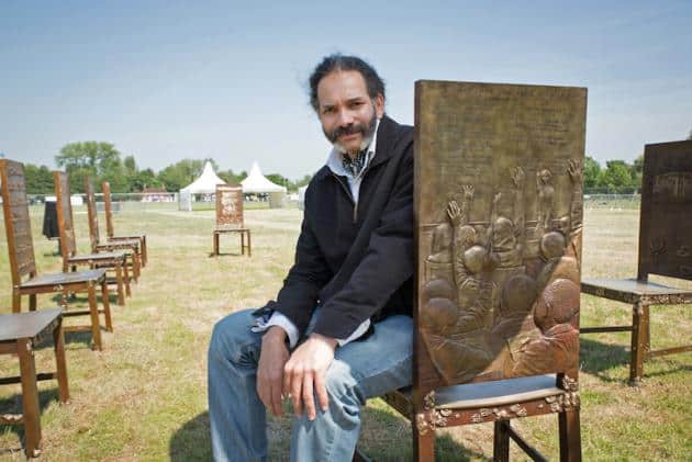 Locke’s new work, The Jurors, is formed of 12 bronze chairs, each decorated with images and symbols relating to past and ongoing struggles for freedom, rule of law and equal rights, including: a loudhailer belonging to Harvey Milk, gay rights campaigner and the first openly gay person to be elected to public office in California from 1977-78; the Zong Massacre of 1781, when 133 African slaves were thrown overboard from a British owned slave ship and for the first time the captain and crew were prosecuted; Cornelia Sorabji was the first woman to practise law in India; and Lillie Lenton, a suffragette. The Jurors is not a memorial, but rather an artwork, which challenges us to consider the ongoing significance and influences of the Magna Carta. The dedication written by Owen Sheers relates directly to the stories that have ins pired Locke and the making of this work.