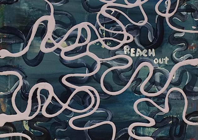 Mixed in with his architectural exteriors are an ongoing series of works depicting hands. The painting attached is titled Reaching Out. Its dark gestural under painting is topped with a pattern of hands, in a style that picks up where Kusama left off. I couldn’t help but wonder if the sea of hands in this painting were in some way related to Noritake’s everyday reality of seeing the hands that clap for him as a celebrity comedian. Amazing I thought: that he can be so emersed in the public eye and yet also be creative, quietly in his own studio. While I’ve never seen his comedy talents, I can say as a painter, I think he is a sincere and true artist.