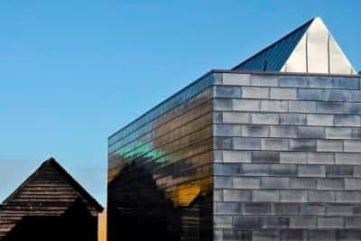 “HAT Projects’ design for the Gallery has grown out of a response to the particular requirements of the Jerwood Collection and the character of the site. The building sits among the unique Hastings net shops, on the edge of the working fishing beach, and the exterior is clad in over 8000 black ceramic tiles, hand-glazed a few miles away in Kent, which reflect the changing seaside light. The emphasis on sustainability is exemplary, with the building creating 60% less CO2 per m2 than an average museum of a comparable size and using 120m deep ground probes to cool the air for the gallery. It houses a range of gallery spaces from intimate rooms through to a dramatic 180m2 gallery for the temporary exhibition programme”; Tom Grieve and Hana Loftus of HAT Projects said.