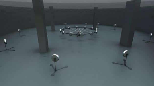 Whum is a slowly rotating, 7-metre wide, highly engineered wheel. On its rim are 9 cylindrical vessels containing undisclosed materials, with a further 10 pods situated around the wheel. As it turns, Whum creates a twisting, folding force or “torsion” between itself and the vessels, affecting anyone in proximity to it. Whum was developed from research into the pseudo-science which evolved around Einstein’s unfinished Unified Field Theory and the Philadelphia Experiment conspiracy theory.