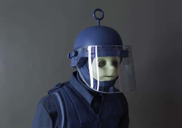 A menacing and dystopian environment is produced at Modern Art Oxford in the exhibition ‘Freedom’, the first solo exhibition in the UK by American artist Josh Kline (b. 1979). This exhibition includes an installation from which the exhibition takes its title. Four towering ‘Teletubbies’ dressed in SWAT gear guard a barren space modelled after Zuccotti Park, the privately owned public space in New York City and site of the Occupy Wall Street camp in 2011.
