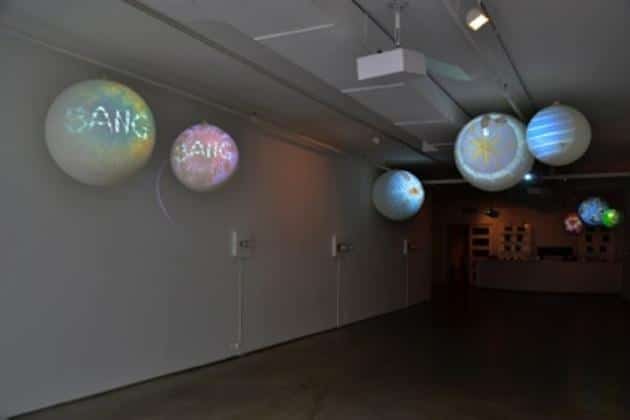 BANG BANG! the first New York solo exhibition for Swiss-born artist Katja Loher, is a new and evolving phase of her video universe, or, to use her terminology, “the miniverse”. Included are her large scale ‘video planets’, hand-sized ‘soap bubbles’ and a host of new works. The exhibition title makes me think of a Nancy Sinatra song where she croons: ‘bang bang, my baby shot me down’. Considering the context of her work, it is a poignant echo because it speaks to how our potential can simultaneously contain the seed for our own destruction. Ms. Loher frames these concerns addressing mindless farming methods for profit, the destruction of natural habitats and ecological systems, and the future of our food supplies. With these new works, Ms. Loher expresses the fragmentation of her beloved harmonious cosmos, a bitter deceleration of the “miniverse” she has been creating within her fragile bubble-microcosms.