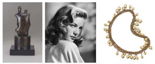 Two bronze sculptures by British artist, Henry Moore, which sold in November’s Impressionist and Modern auction at Bonhams New Bond Street, the final result for the entire Lauren Bacall Collection is £3.4m ($5m). More than 1,500 bidders from 34 countries took part in the highest profile auction of the season at Bonhams. Henry Moore, Britain’s greatest 20th century sculptor, was a good friend of Lauren Bacall. Bacall’s deep admiration of Moore began in the 1950s while she was living in Los Angeles, but it was not until 1975 that the actress was introduced to the sculptor by Robert Lewis of the Brook Street Gallery in London. Bacall owned a total of 34 works – sculptures, drawings and prints – by the artist. The top lot by Moore in this sale was Three-Quarter Mother and Child, which achieved £62,200 ($118,750), more than three times the high estimate. In November, Bonhams sold a bronze sculpture by Moore which had belonged to Bacall, Working Model for Reclining Figure: Bone skirt, which made £714,000 ($1.06m).