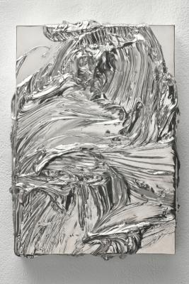 Martin has always questioned the limits of painting. The rough reliefs of his pigment paintings beg to be understood from every angle, reaching out, tempting to be touched. Martin works monochromatically, using the structural properties of a colour as a starting point for every piece, basing his choice on tactile qualities and from there building with the colour as a sculptor might. Similarly tactile are Martin’s new works in which he explores and moulds materials directly with his hands before casting in a variety of metals. Foregoing any relationship to conventional artistic tools, the impact of the body creates raw and primal results.