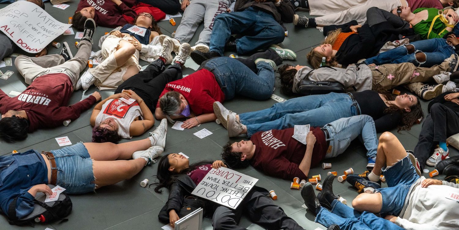 Top Photo Harvard University students and PAIN members protesting in the Arthur M. Sackler Museum—Photo: courtesy of Dumedi Malaika Menakaya – PAIN.