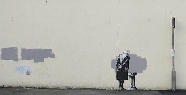 A new Banksy has appeared on a wall in Kent, in time for the Folkestone Triennial, which was launched last month. The mural depicts a mature woman staring at an empty plinth, shaped like a classical Corinthian column, whilst listening to a recorded tour. The most notable thing about the painting is that the background has been greyed out by the council. This is no doubt a comment on the destruction of many pieces of street art including Banksy’s own creations.