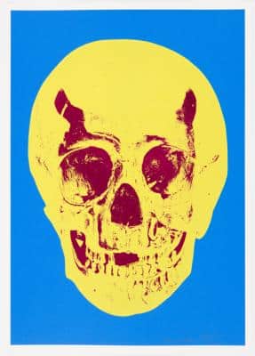‘Utopia’ will display works depicting rows of either pills, diamonds or cigarettes arranged in metal cabinets, together with ‘Till Death Do Us Part,’ a series of ten foil block skulls on brightly coloured silkscreened paper.