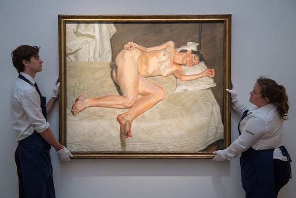 A painting by the British Artist Lucian Freud from his ‘last great nudes’ series, Portrait on a White Cover has sold at Sotheby’s London for £a record 22.5million / $29.8 million. This is now the most expensive painting by the artist ever sold in London. The previous highest price for a work by the artist was £16.1 million for ‘Pregnant Girl’ also at Sotheby’s in February 2016.