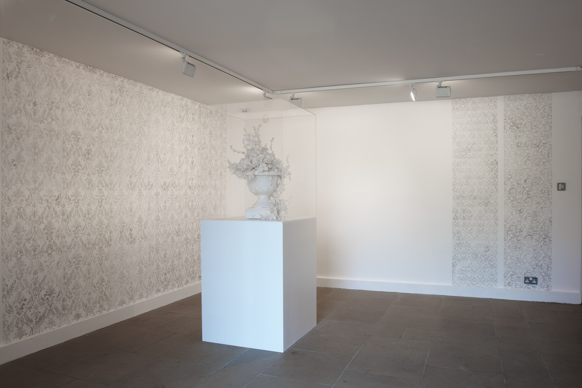 June was the perfect time of year to stroll through Battersea Park to the unique four floor gallery which – happily – survived a well-publicised grant reduction. Here Jodie Carey used a pared-back aesthetic to tease a fragile beauty from base materials, affirming life at the same time as evoking its vulnerability and potential addictions. Cumulatively, her installations – wallpaper patterns of cigarette ash; a marbled and surprisingly sparkly carpet of ground blood and dust; cast plaster slabs which incorporate the chance effects of coffee and lace – also brought a bodily presence to the architecture.