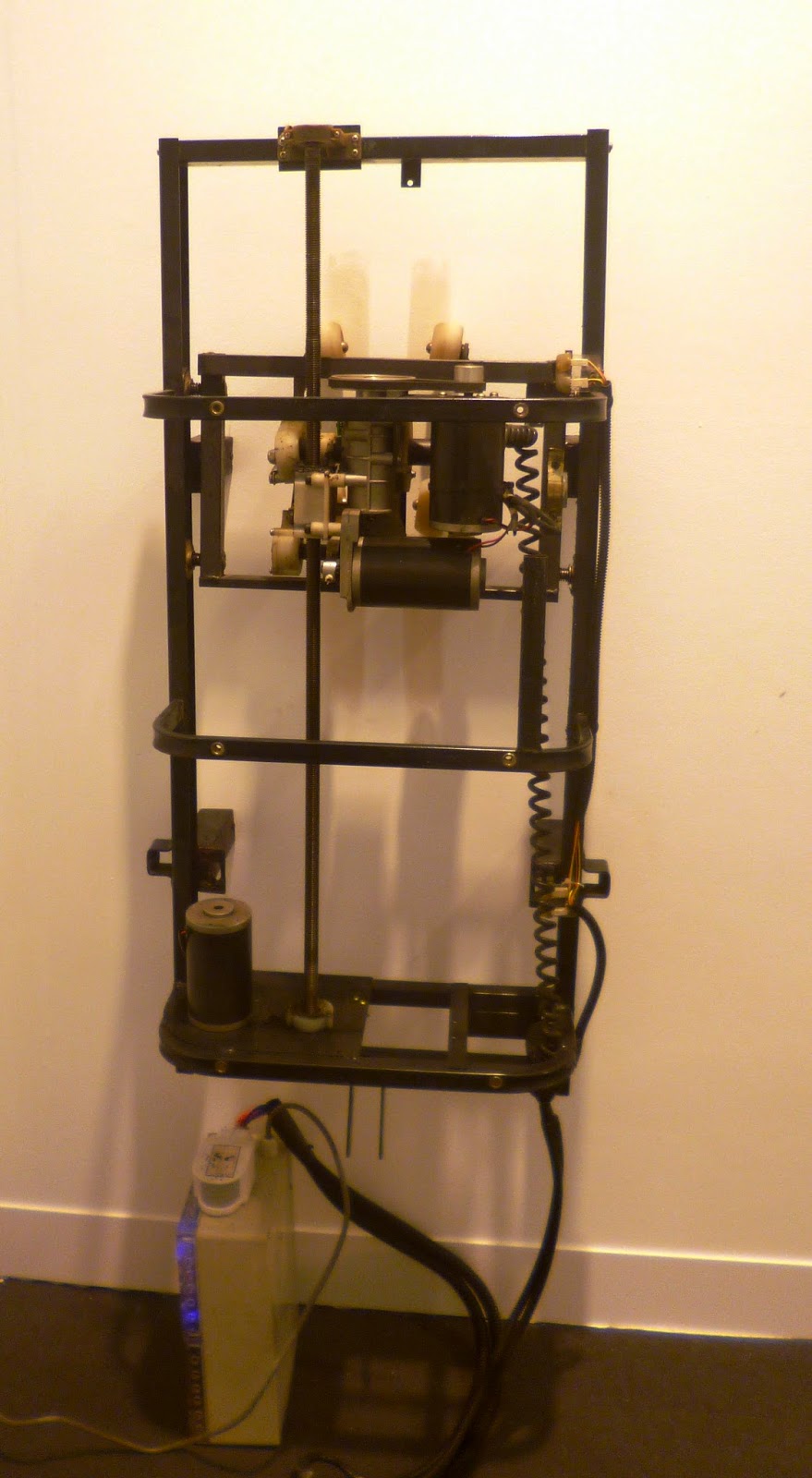 This is the working mechanism of a massage chair stripped of its upholstery: you could watch the pressure pads ease themselves down then shudder their way up, with a compelling whirr, against the back of the wall – and wonder how pleasant the uncushioned sensation would be. Shanghai-based Yang Zhenzhong often brings foreboding into his wide range of work, for example his 2007 film of people saying ‘I will die’ – so perhaps it’s no surprise that this skeletal form resembles an electric chair.
