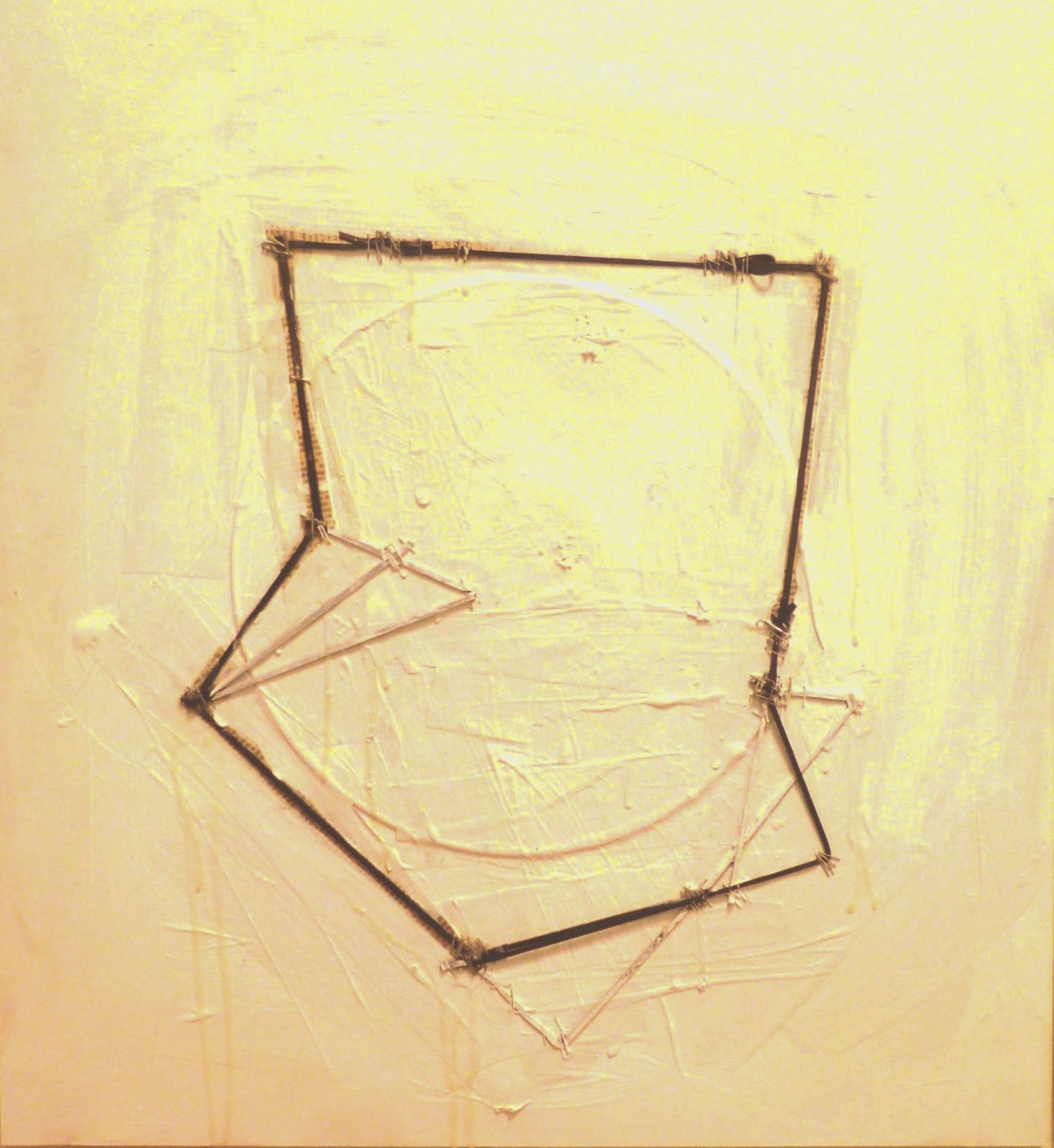 Prince is an artist of many streams, from jokes to nurses to photo-appropriation to car bonnets to de Kooningesque nudes to various series of abstract paintings. In the group he calls ‘Band’, underlying information – here a text and a record – is rendered inaccessible by white paint, on top of which angular abstract shapes are made by stapling the rather impermanent medium of rubber bands to the canvas. ‘Normality as a special effect might be another form of hysteria’, said Prince by way of several explanations when he first showed in this mode in 2011. ‘These paintings are like an unrecognized dinosaur… a beautifully feathered tyrant’. I trust that clarifies the intent.