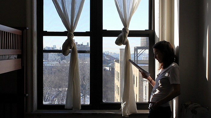 The Festival is fairly light on films, but two of the few are outstanding – and both made by Canadians. Erica Eyres’ elliptical yet stark tale of apparent abuse, ‘Inside the Minds’, is well hidden at the back of the Southside artists’ studios near Queens Park (but you can see it here: http://vimeo.com/40407725). It travels a long way in five minutes, even though most of it shows a whitewashed wall. Moyra Davey’s far more expansive ‘Les Goddesses’ takes an indirect and multi-stranded hour to relate the artist’s own family history through the project of describing Mary Wollstonecraft’s. This is told through Davey pacing her flat repeating into a Dictaphone the apparently pre-recorded words feeding into one ear. That amplifies the contrast between the diaristic and the measured which is one of the many themes – Goethe, muses, Rome, Freud, adolescence, siblinghood, Benjamin, laudanum and writing in public – woven into Davey’s intimately hesitant meditation.